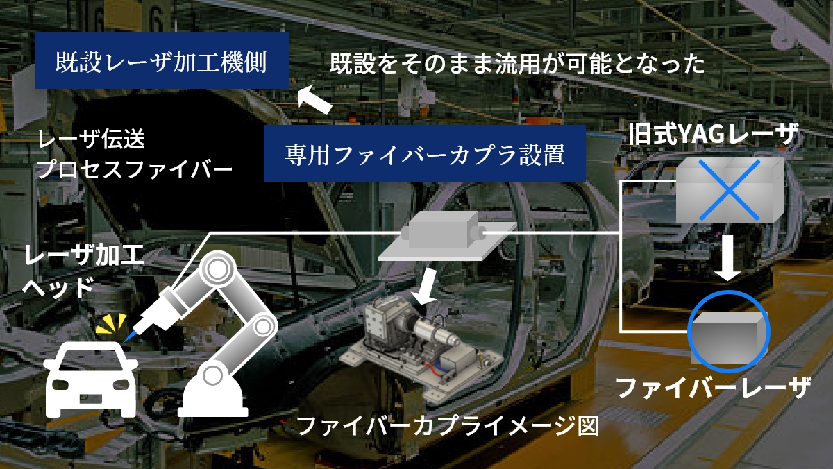 One of our customers, an automobile manufacturer, wanted to upgrade their laser oscillator from an old YAG laser to a fiber laser in order to improve the efficiency of the laser welding process and reduce running costs in their production lines.