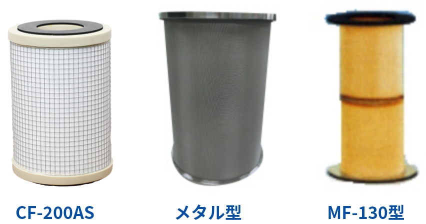 - ろ布は粉体専用の「HS 26」型と油分、水分(ミスト)等を除去する「HS 2D」型の2種類があります。