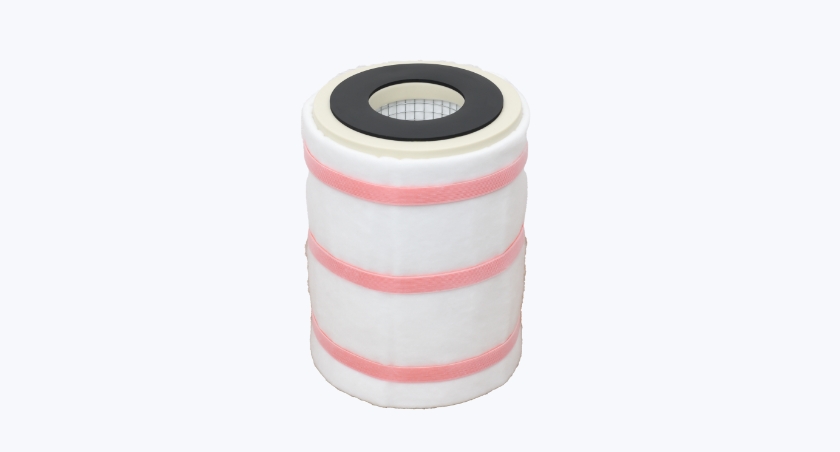 - 通常、目詰まりはフィルターの表面から起こるため、外周部に、1枚わた状のろ布を巻く事で更に粗取りが出来、交換頻度を上げる事でフィルターカートリッジの寿命を延ばせます。